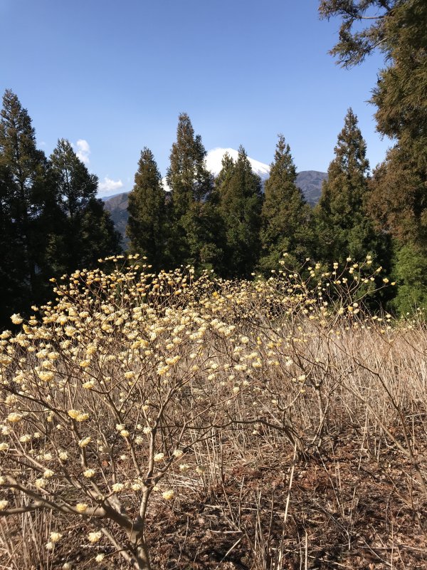 登り始めて、約1時間で山頂です。手前からミツマタが咲いてました。