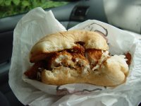 3日目も「カフェセレナ」で朝食、その後プールに入り、その後娘がお昼寝をしている間に「パーラー三角」に買出しに行ったのでした。23号棟から駐車場へと、お店とは反対方向に歩き車で行きました。どう見ても、駐車場と「パーラー三角」のちょうど真ん中に23号棟がある気がして(恐らくそんなところです)ようで、途中外の道に出られないか探しましたが、不可能でした。店には、食べるところもあるようなので、レンタル自転車で行っても良いかもしれません。(反対方向へ向かえば、ファミリマートもありますから・・・) 買ってから部屋まで戻っても、商品はまだ熱い状態で、また娘に邪魔されることなく食べることができました。この後車で出かけることも予定していなかったのでオリオンビールを飲みながら、チキンバーガーをパクリ! お昼寝から戻った娘は、残っていたホットドッグを平らげ、朝予約を入れておいたグラスボートへ出かけました。 |