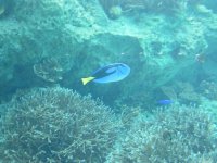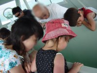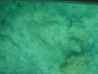 | グラスボートは15人ほど乗れる船でした。当日は、子供たちを含めて10人ほど乗っていました。1日に午前と午後の2回出航予定で、朝の予約の時点ではすでに午後しか空いてませんでした(予約の数次第では、3回出ることもあるそうです)。浜から1キロほど行ったところで海中を見ました。結構きれいに見えました。小さな魚たちやナマコ、珊瑚などを見ることができました。初めて船に乗った娘は、大喜びで、「お魚さん」たちを見てました。乗船したときの注意で、「下ばかり見ていると酔いやすいですから、遠くを見ていてください」とありましたが、娘はずっと下を見てました。全くの船酔い知らずでした。実際は結構波もあり、船に弱い人はダメだったでしょう(当日の話ですので、毎日同様ではないと思いますが)。約40分の船の旅でした。