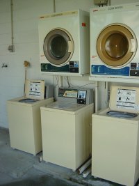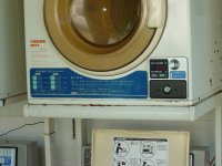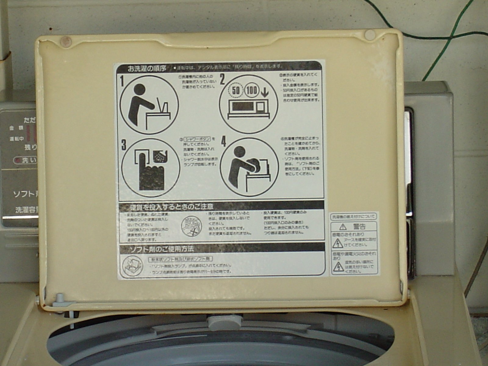 敷地内にランドリーは2箇所あります。個人的にこの関係の情報が不足していると感じたので、たくさん書きます。 まず、設置している機械ですが、それぞれの場所に洗濯機と乾燥機があります。費用はどちらも100円です。洗濯機はコース設定はなく、100円で脱水までやってしまいます。乾燥機は100円で30分程度回っているみたいです。 洗剤は、私たちが滞在した時はそばに置いてありました。「部屋干しトップ」の子袋タイプでした。 洗濯方法は、以下の通りでした。 @ふたを開けて中を確かめて100円入れる Aすぐに「シャワーボタン」を押す(内部を洗ってくれます) B洗濯物と洗剤を入れる C20分ほど待つ D「柔軟剤投入ランプ」が着いているときに柔軟剤を入れる E脱水 F終了(ここまで約30分) もちろん柔軟剤を入れる必要がなければ、CDは省略できますが、せっかくの旅行ですからちょっと良い素材の服などを洗う場合も多いと思いますので(うちは、まさにそうでした)、柔軟剤や洗濯ネット(これらは持参する必要があります)があると便利かと思います。ランドリーの隣は飲み物の自動販売機となってます。両替機はありません。 干す際は、部屋に備え付けの物干し(部屋干し用のもの)があるので、特に心配する必要はありません。