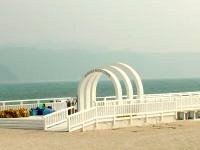 前日の朝に入れた予約通り、ビーチサイドレストランでオクマ最後の夕食でした。夕日の見える席でバーベキューを食べました。少し曇り空でしたので、きれいな夕日というわけにはいきませんでしたが、海が目の前で、波の音も聞こえるところでした。 |