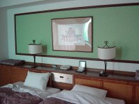 フロントの向かって左奥にあります。IBMの縦型の本体でOSはWindow2000でした。インターネットもできますが、ダイヤルアップ接続のようで(調べたわけではありませんが)、時間がかかります。Hotmailでメールチェックしましたが、ずいぶん時間がかかったように思います。本体前面と裏側にUSB接続がありますので、リーダーライターがあれば、デジカメの画像等を取り込むことは可能です。メール添付に利用できると思います(もちろんそれなりの時間がかかることは覚悟のうえで)。 CD-Rへの書き込みは、ドライブがCDドライブですので不可能です。USBメモリーなどを使うことは可能です。 特に昼間は、使っている人を見ることはありませんでした。 |