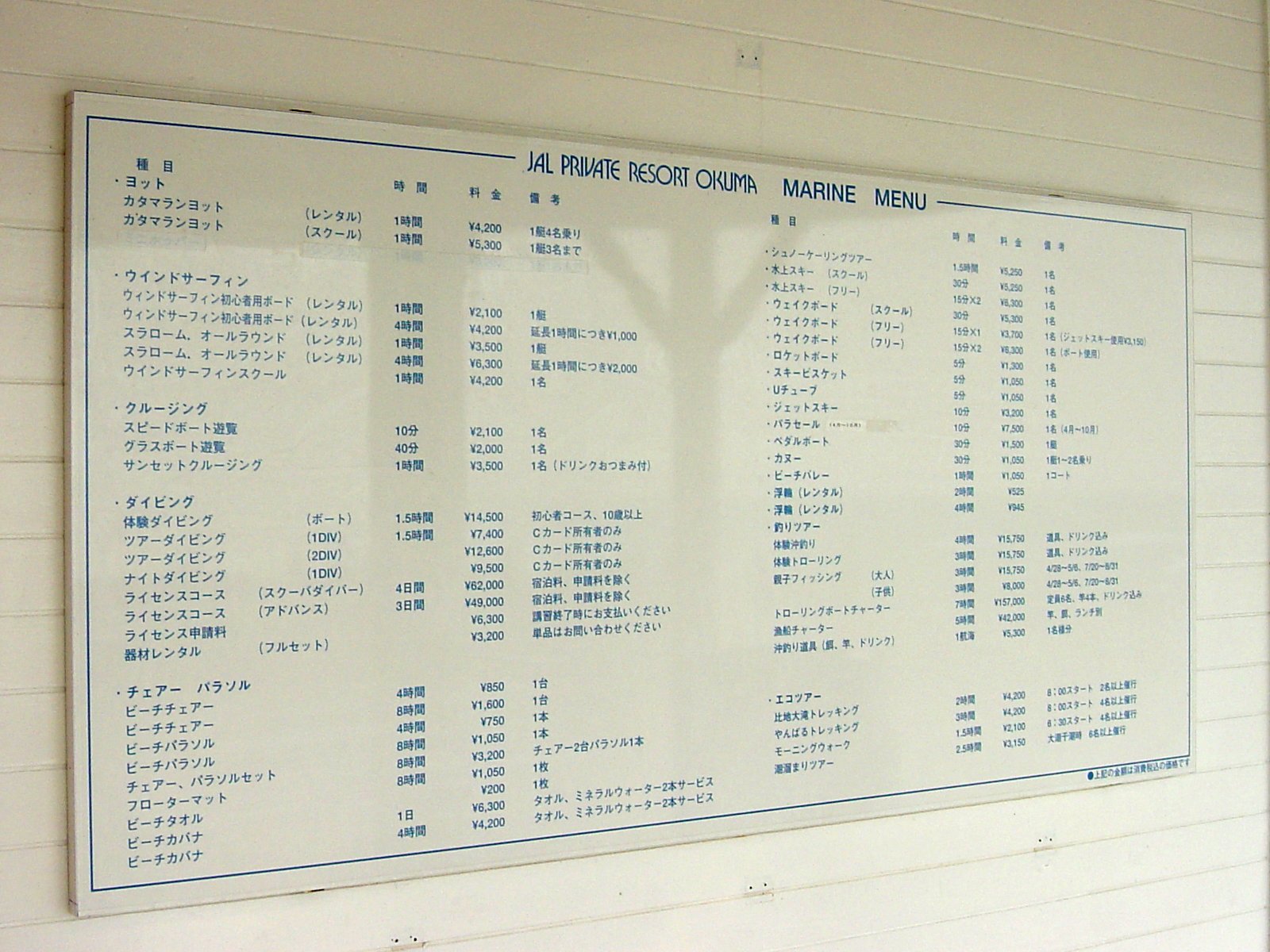 | ・旅程 ・羽田まで ・駐車場 ・飛行機 ・那覇空港 ・レンタカー ・高速道路 ・海洋博公園 ・美ら海水族館 ・名護のイーオン ・JALオクマ ・オクマビーチ ・オクマの食事 ・オクマの設備 ・辺戸岬 ・那覇空港まで |