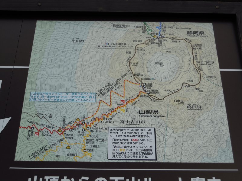 11:50 剣ヶ峰→12:30 吉田ルートの山頂に戻り昼食(〜13:00)→16:00 駐車場着