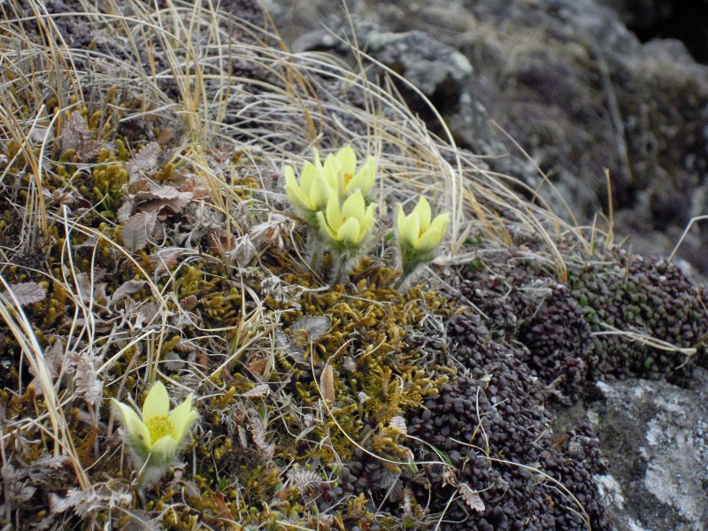 このあたりで、ツクモグサを発見。