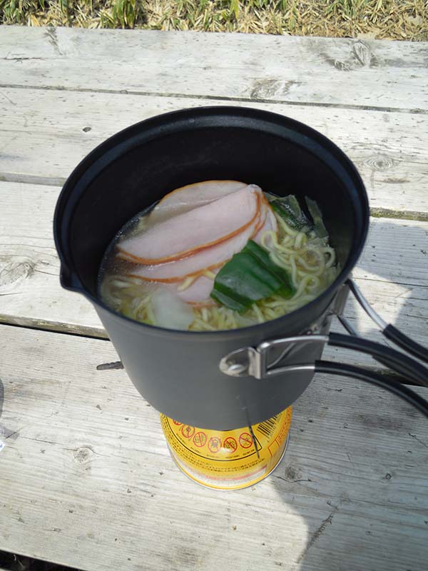 塩ラーメンに、キャベツとピーマン。更にその上にハムを乗せました。