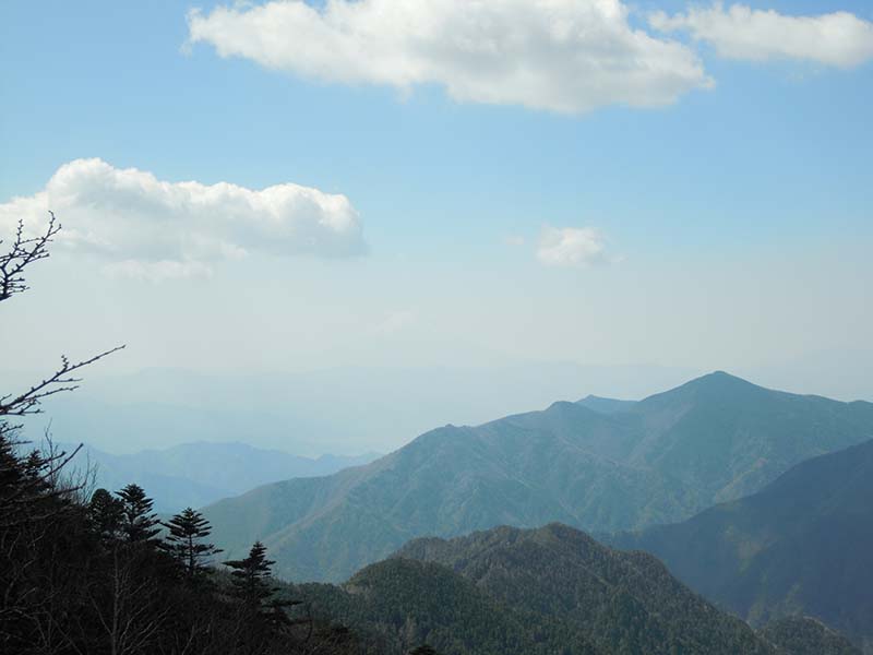 途中で撮影、中央右がこれから向かう丹沢山です。
