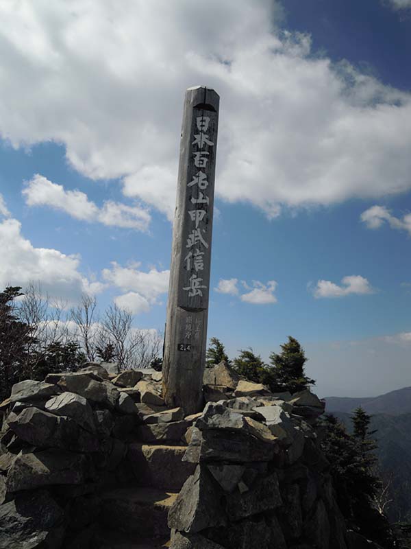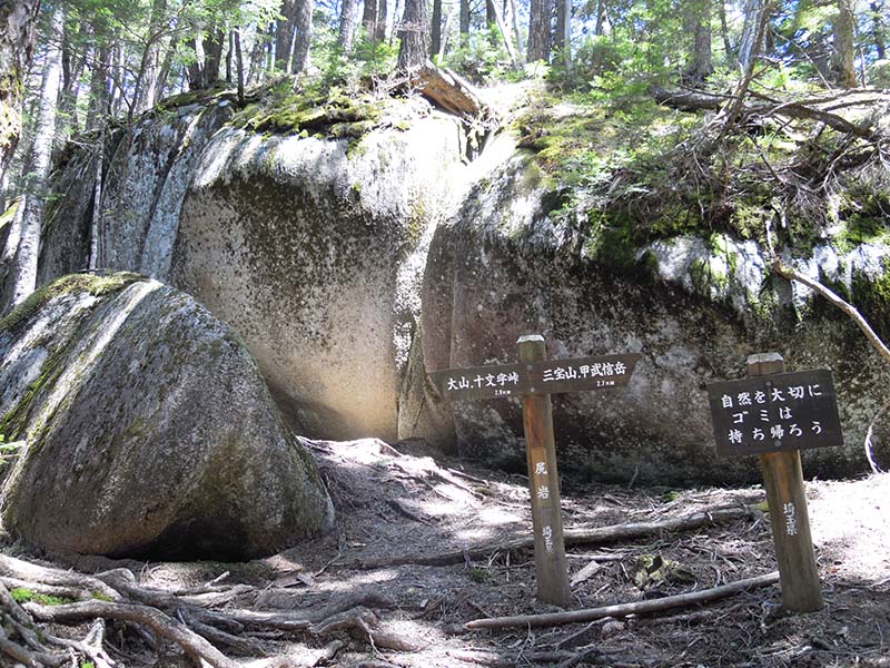 12:06 武信白岩山→13:15 十文字小屋→14:40 駐車場到着
