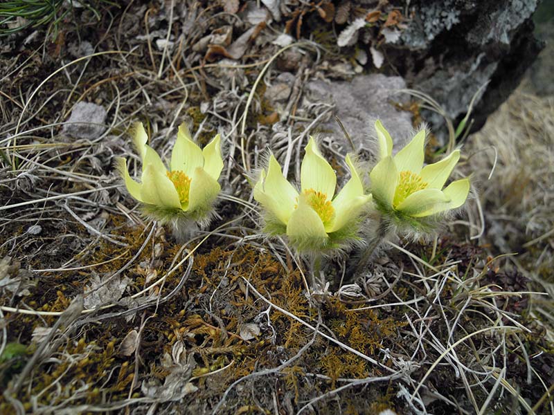 横岳山頂を過ぎると、ツクモグサの時間です。