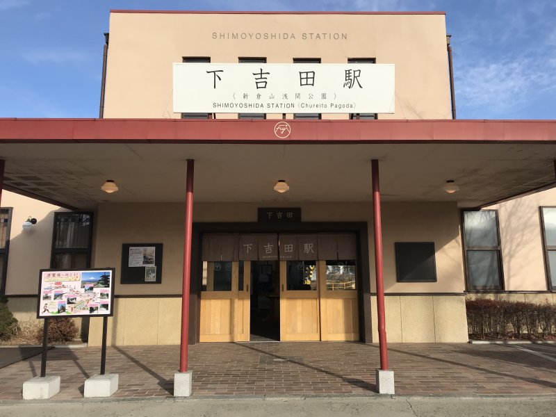 下吉田駅は、これから行く新倉浅間神社人気で、きれいな駅舎でした。