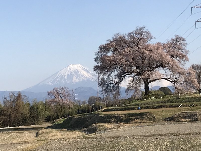 富士山をバックに、でも木が邪魔です