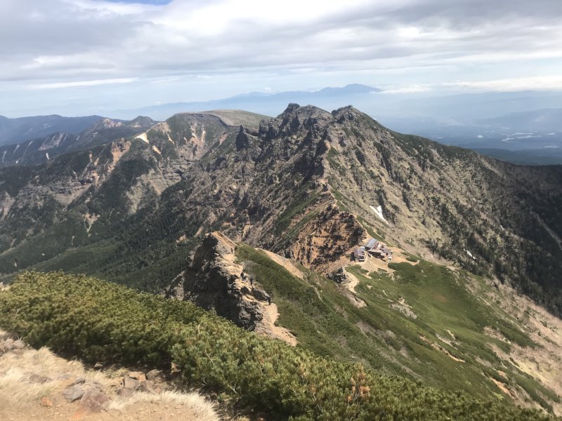 赤岳頂上山荘(2021年度はお休み)前から、赤岳展望荘から中岳、硫黄岳