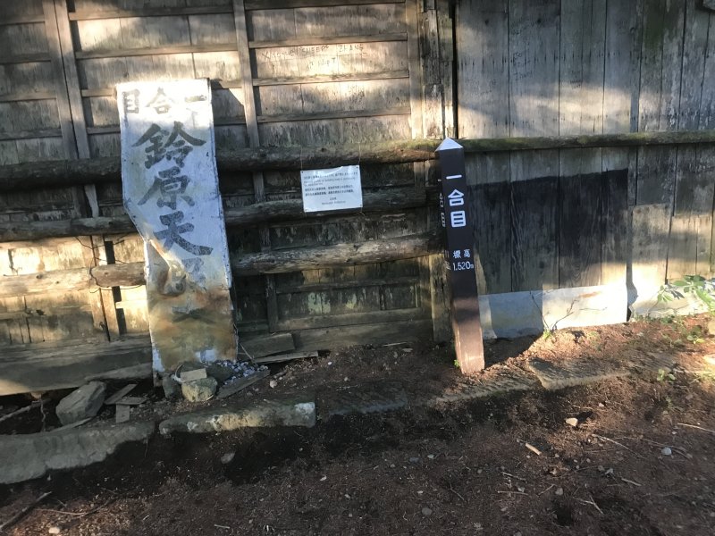 すぐ上の鳥居をくぐった先の標識 ここから512分だそうです