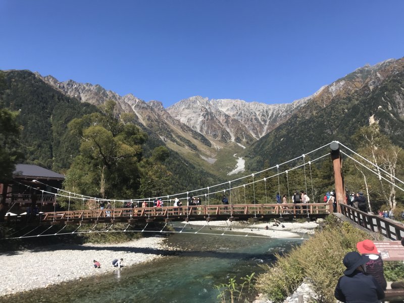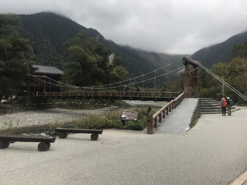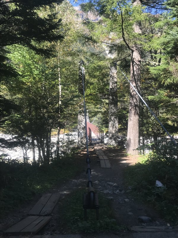 この横尾大橋を渡って涸沢方面です。今日は渡らずにまっすぐ進みます。