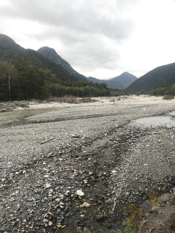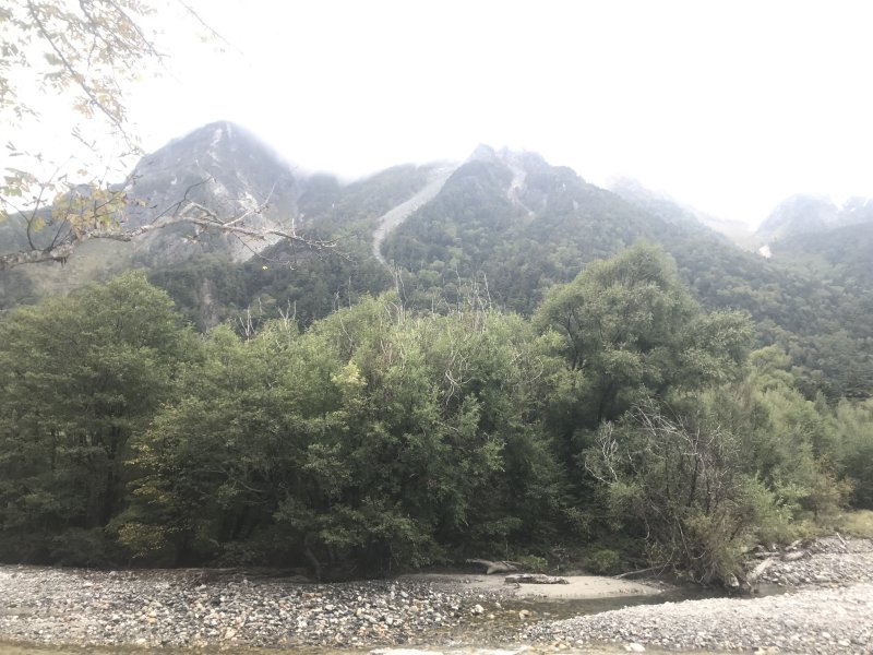 8:40 降っていないので、雨具はまだ出さずに出発→8:46 河童橋