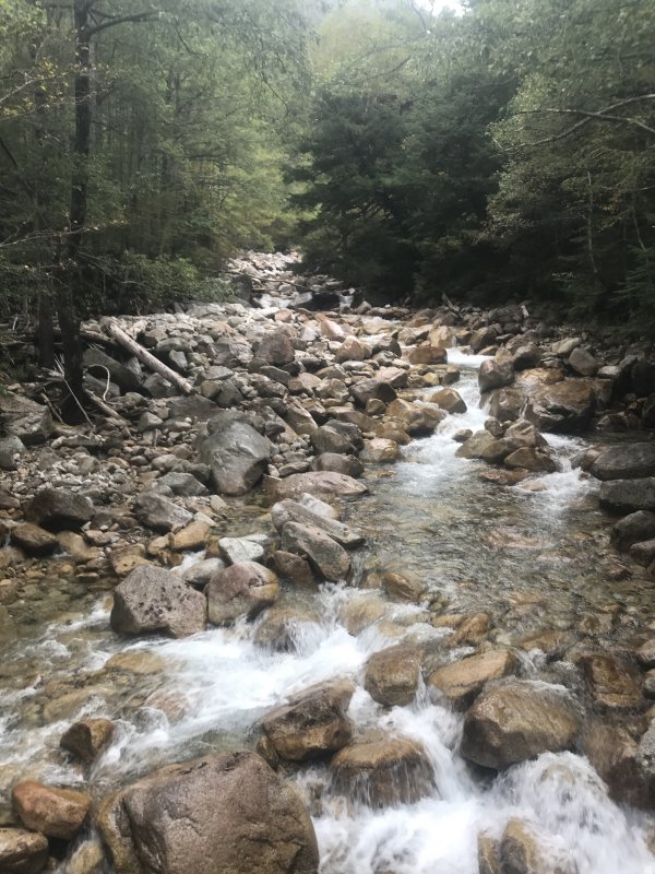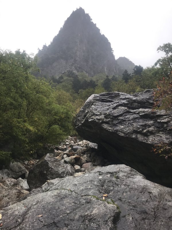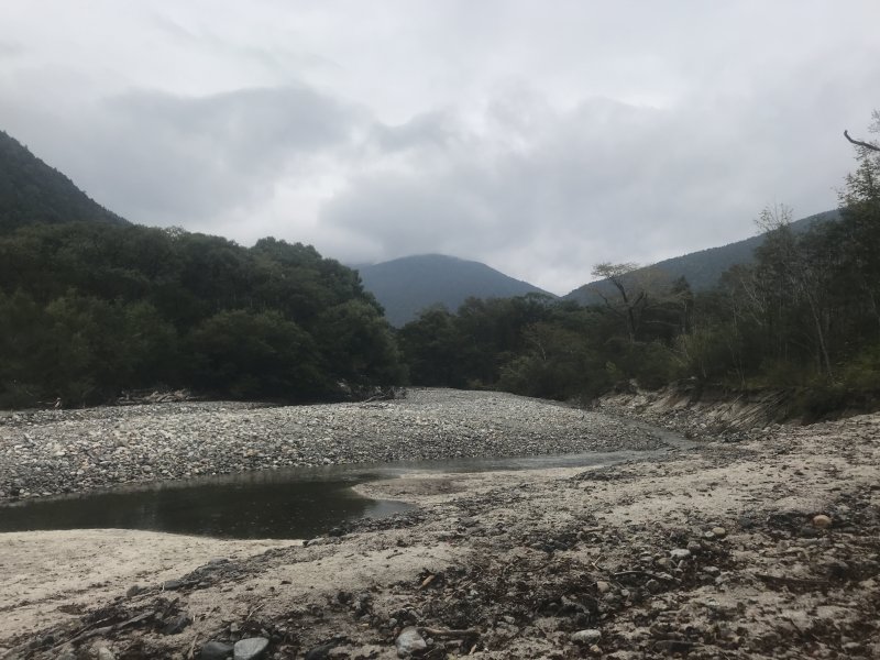 12:00 横尾出発→12:47 一ノ俣の流れです。小雨が降り始めました。
