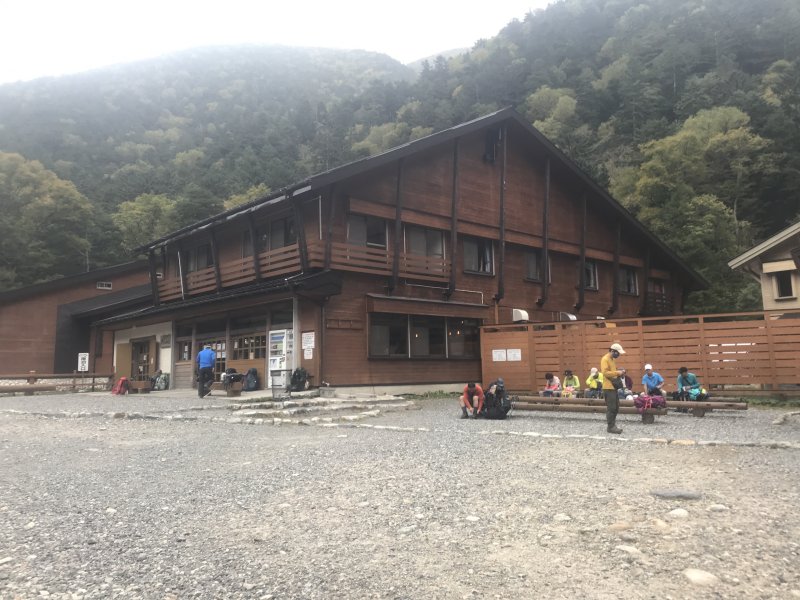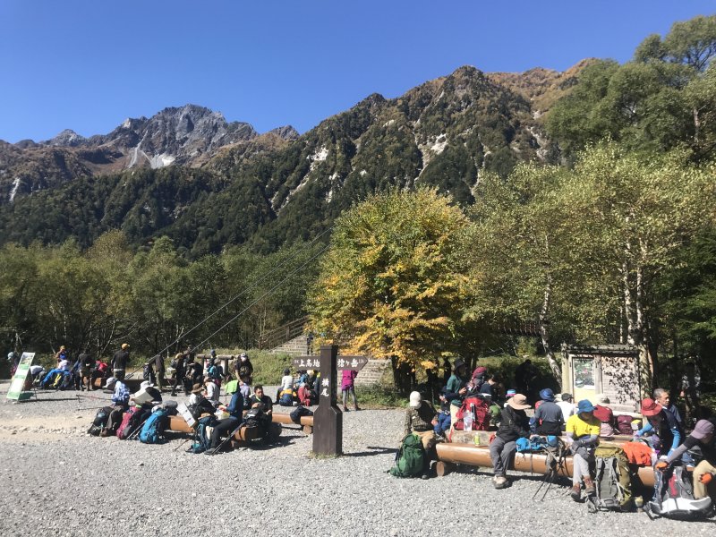 9:50 横尾まで戻って来ました。行きの時とは違って、人がたくさんいました。