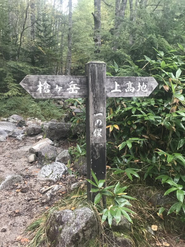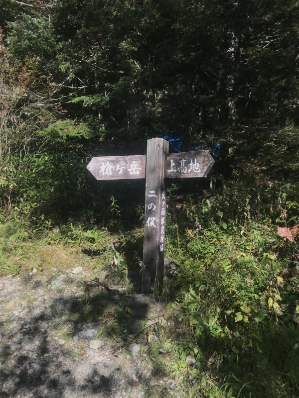 9:45 徳本峠(とくごうとうげ)への分岐です。今(この時)は徳本から先、島々谷(しましまだに)へは、抜けられないそうです。