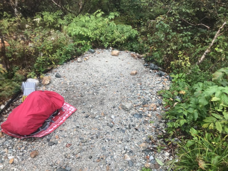 14:20 ババ平到着、テントを張る場所を探して、ココに決めました。