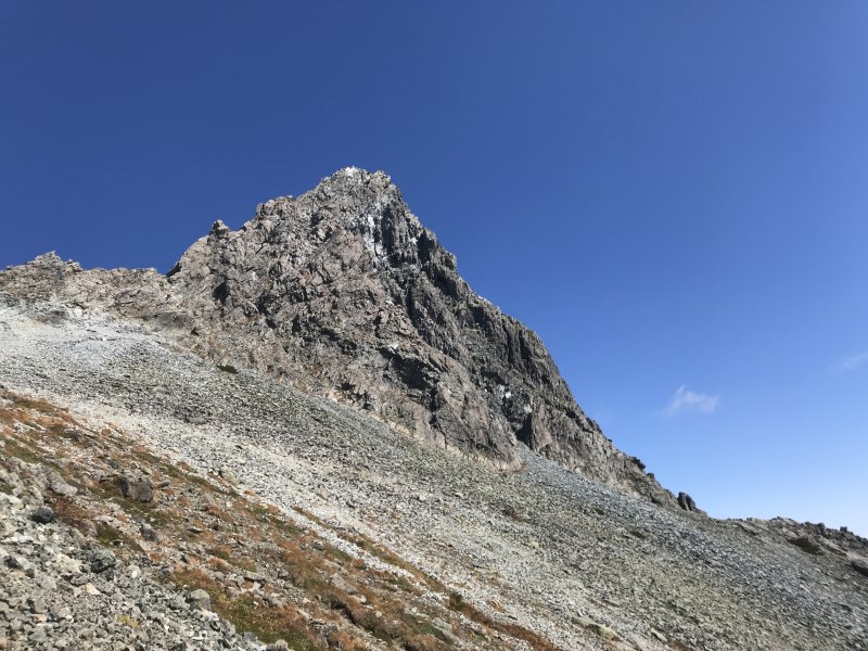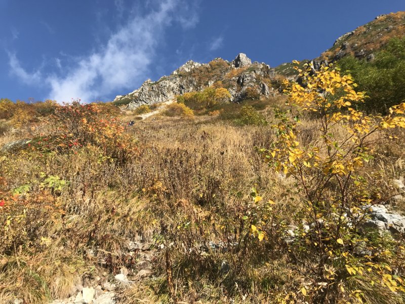 10:30 不要な荷物を置き、ここからはヘルメット装着で穂先アタックです。