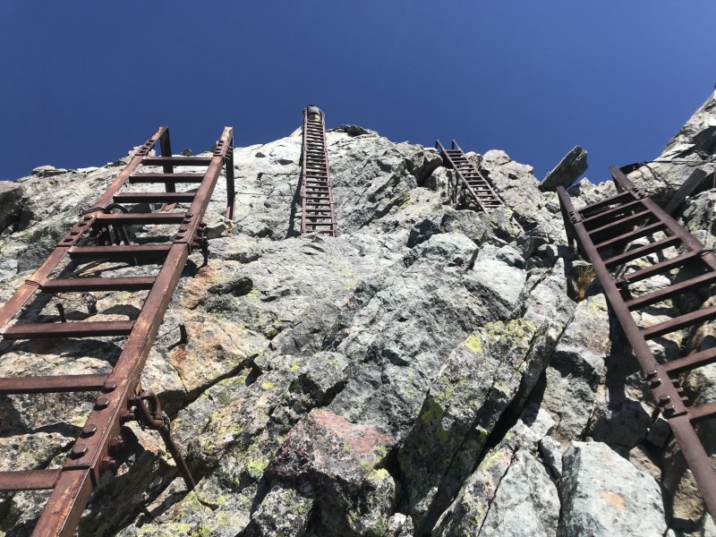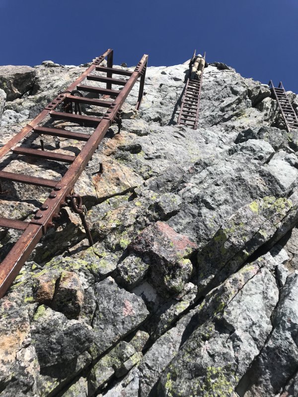 10:46 残り、ハシゴ2つで山頂です。ほぼ垂直に見えます。