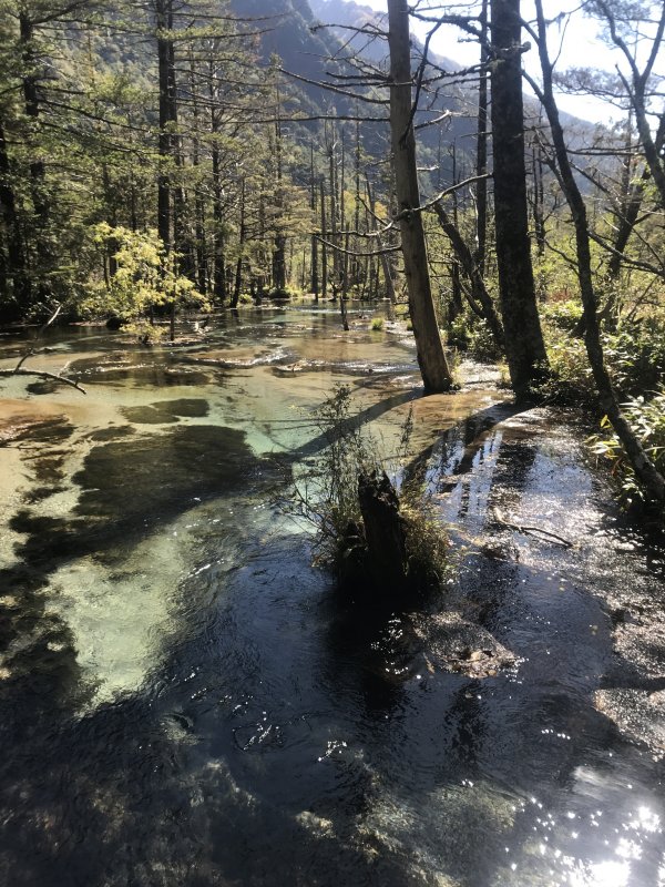 12:30 岳沢湿原に入りました。水の流れが美しい!