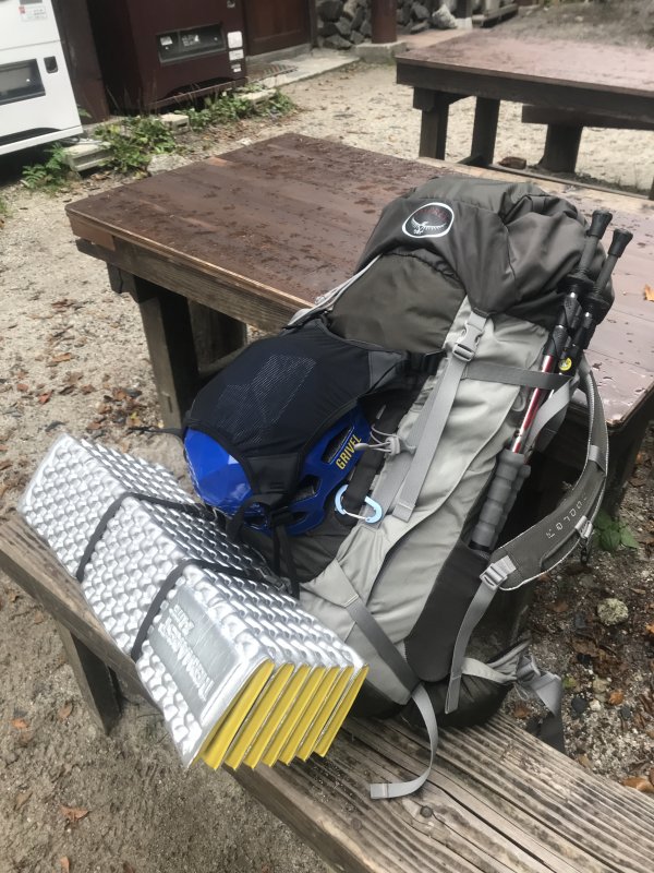 ザックを下ろしたので、撮ってみた。推定15kgオーバー。