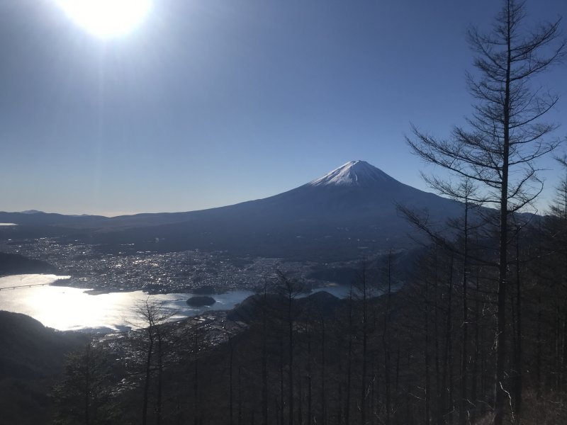 河口湖畔に前日入りし、朝から周回コースで計画しました。