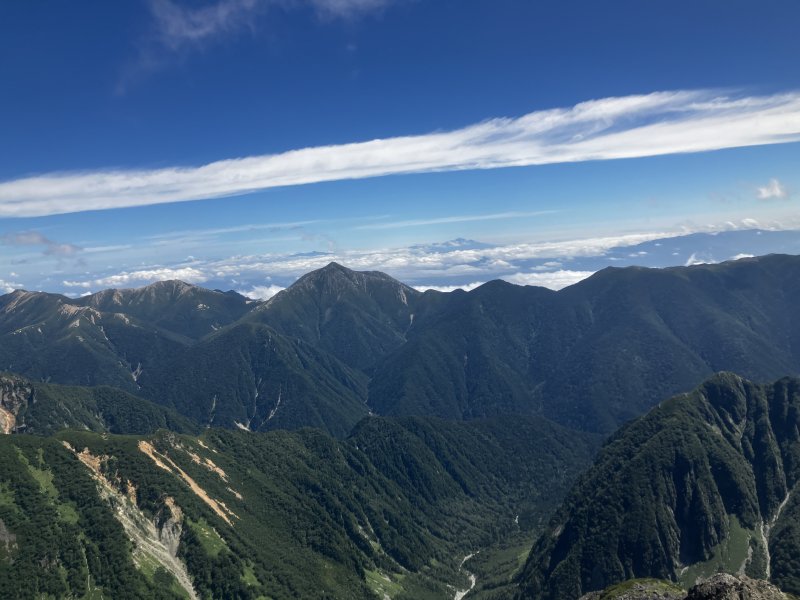 雲がなければ、槍ヶ岳の姿が見えるはず・・・