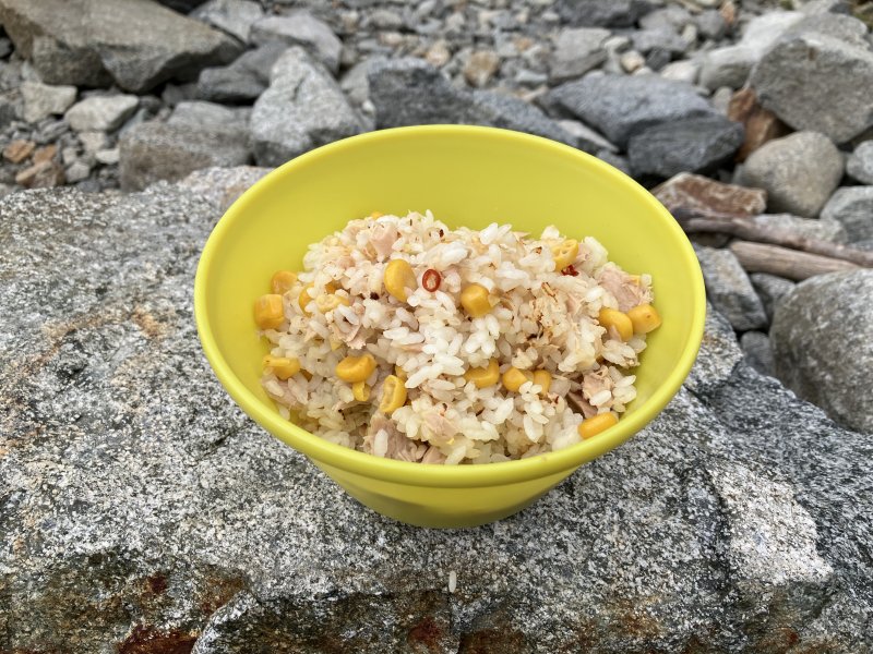 テントに戻って、炊きこみご飯の夕食。そして就寝。とにかく寝ました。