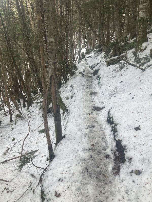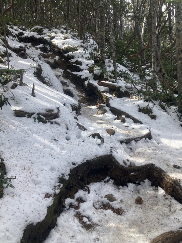 山頂付近には雪があり、チェーンスパイクを使いました。
