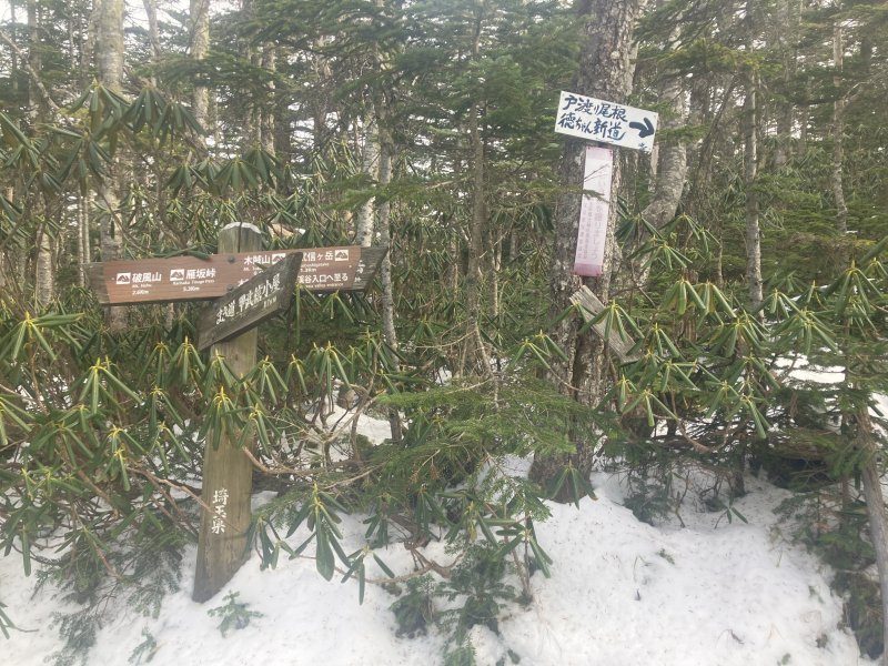 10:36 破風山との分岐です。まだ雪は少なめで、この日はここまでは、滑り止めなしでも大丈夫でした。