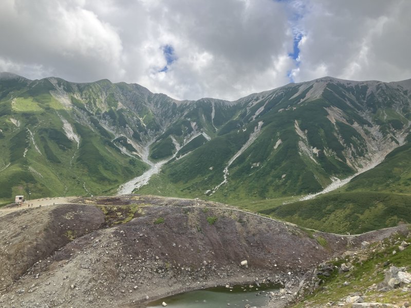 大町から扇沢へ入り駐車場、立山黒部アルペンルートで室堂へ。