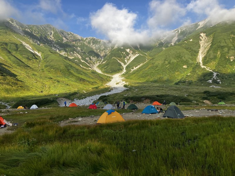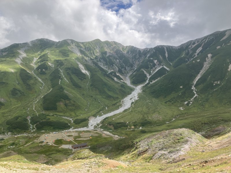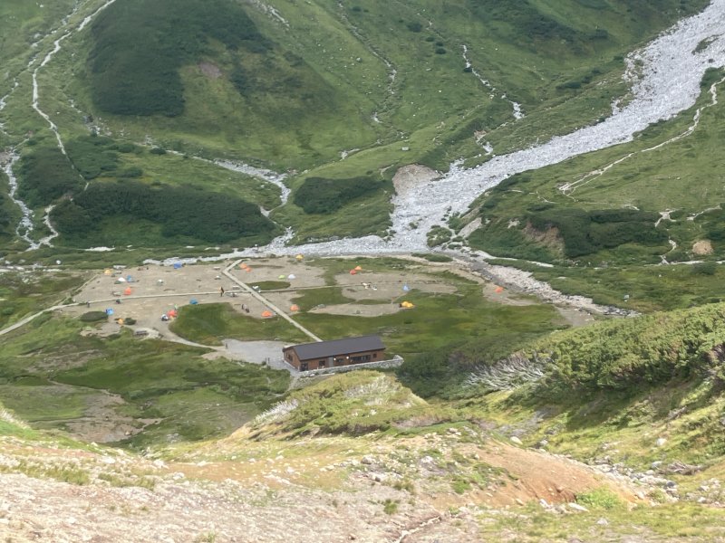 翌日テントを張る雷鳥沢キャンプ場を見つつ、剣御前小舎へ登り、