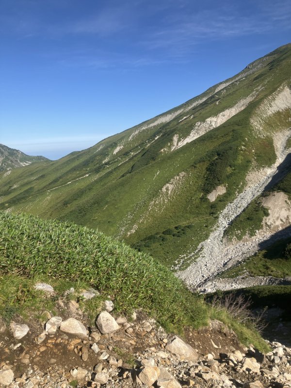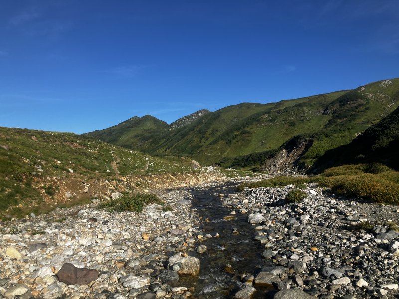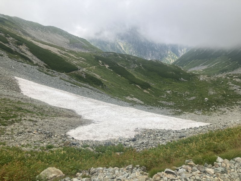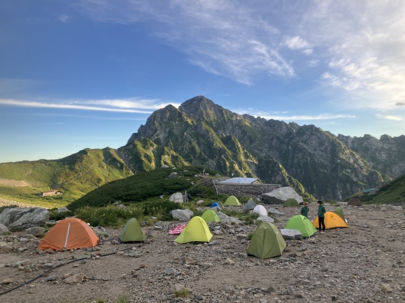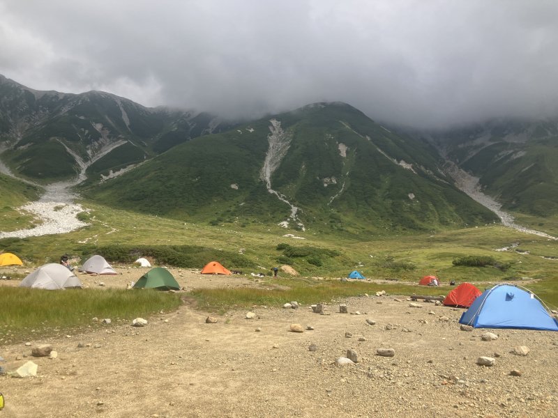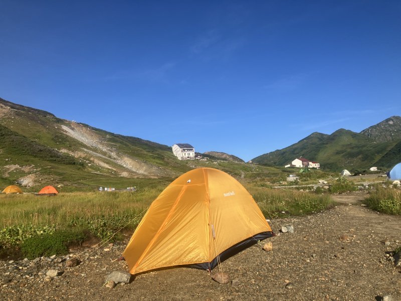 14:00 テント撤収後の様子です。雷鳥沢キャンプ場へ出発!登り返しがあるので、頑張らないと。
