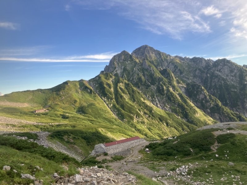 手前に劒沢小屋、向こうに剣山荘が見えます。