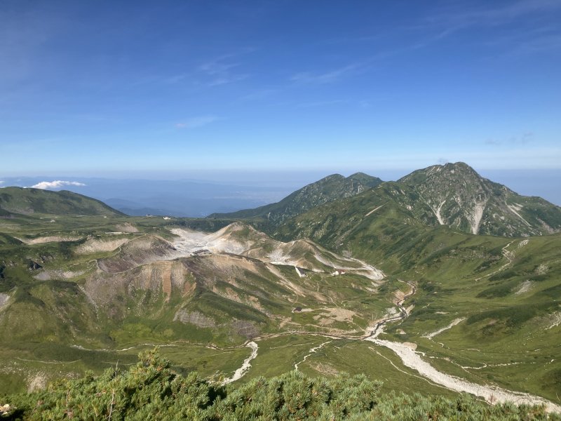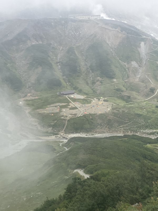10:50 少し登って振り返ると、雷鳥沢キャンプ場が小さく見えました。