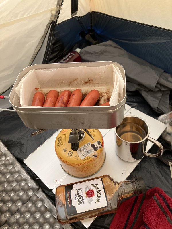 はい、翌朝です。テントをしまって9:00 青空も出てます。