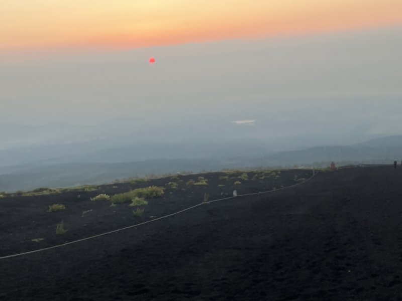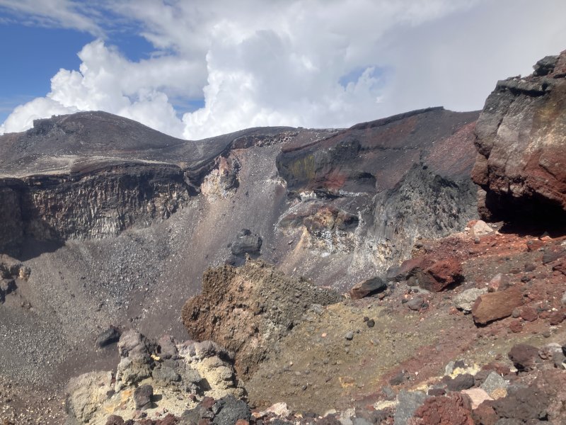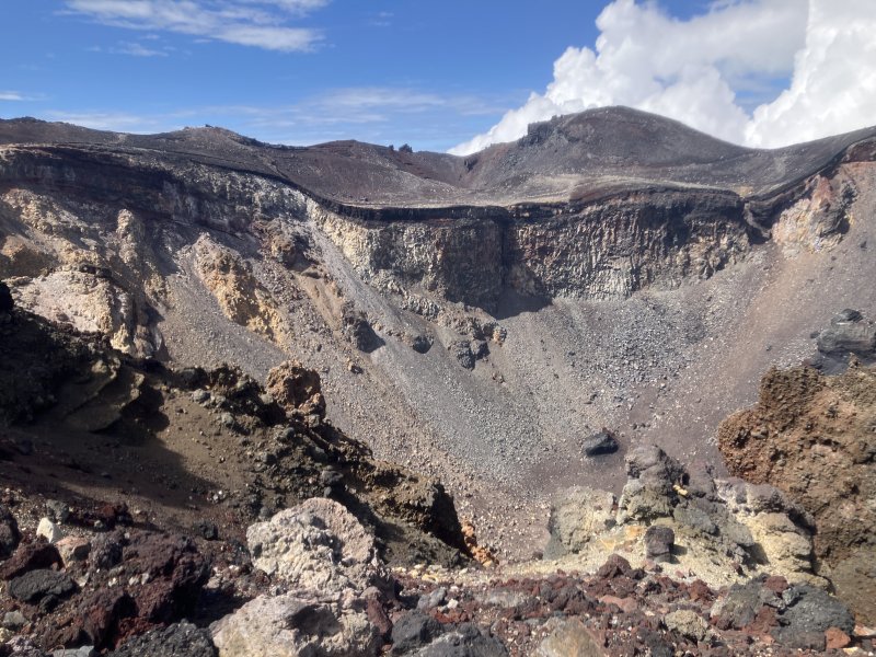 火口を見ながら、カップ麺とおにぎりでランチしました。
