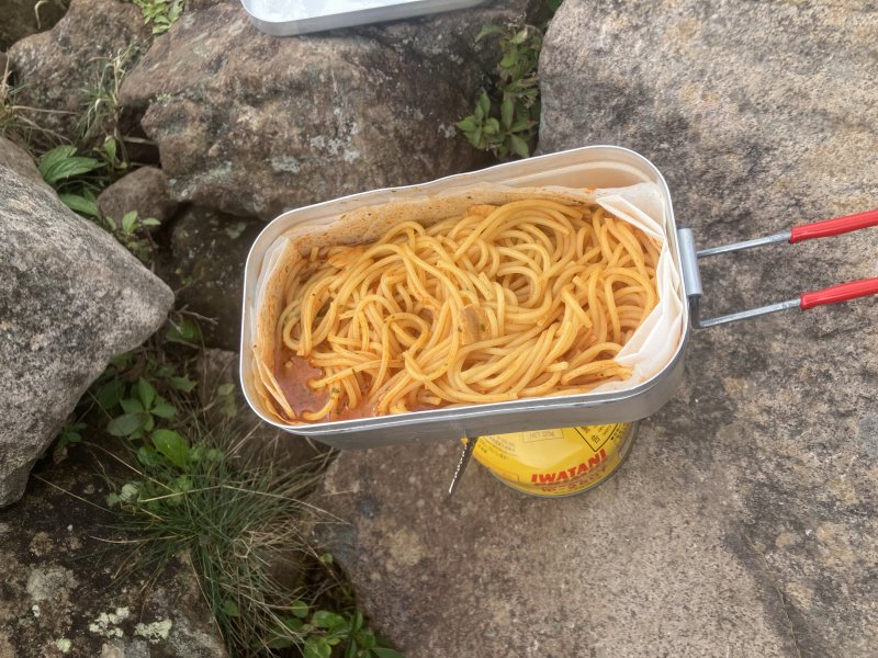 シャウエッセンを焼き、トマトソースパスタとコーヒー。